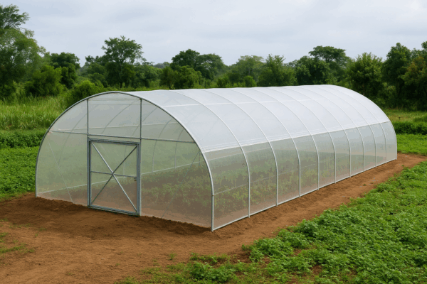 La serre pépinière 250 m² est idéale pour produire un grand volume de jeunes plants en Côte d’Ivoire. Robuste, bien ventilée et économique, elle garantit un développement optimal des semis.